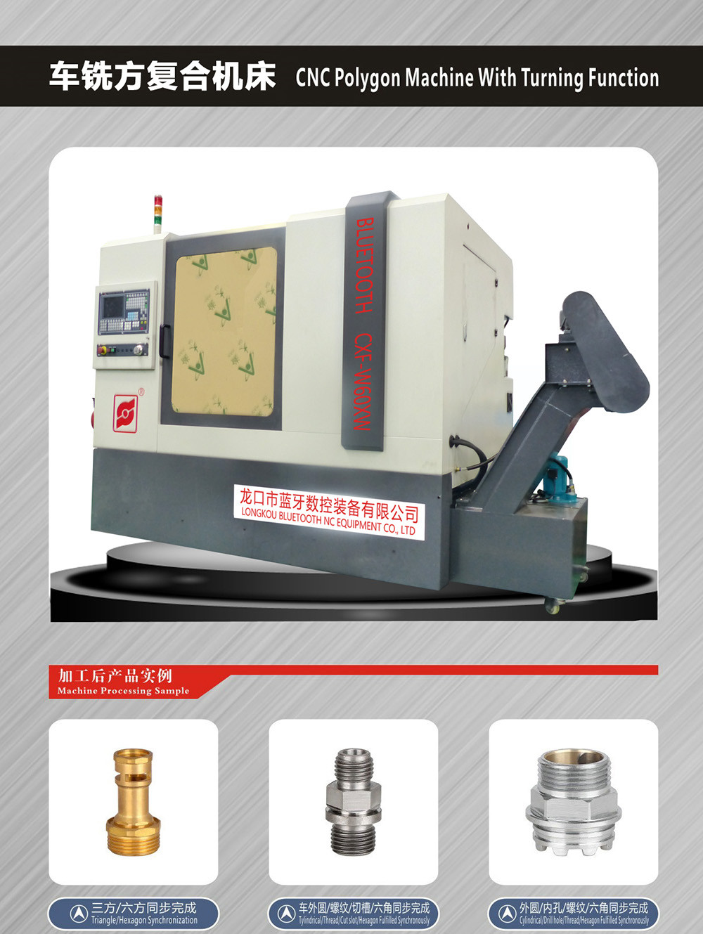 本機床配合伺服主軸精密的分度功能,可以輕易在同一臺機床上加工復雜的零件,如側(cè)面銑削、鉆孔、攻牙,曲線銑削等插補加工,大大降低上下料二次加工的時間,同時提高產(chǎn)品的位置定位加工精度,同時節(jié)省了二次加工的投入。